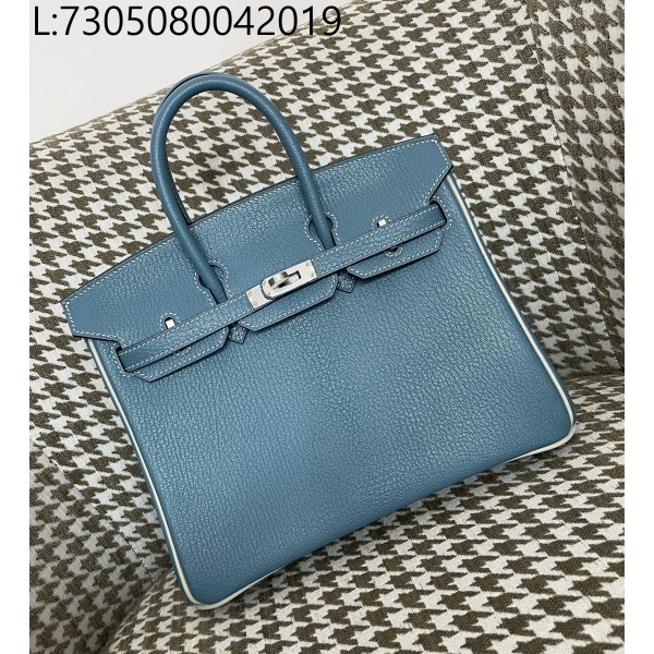 • [장인의집,심안공장] 에르메스 버킨 25 데님 블루 배색 은장 산양가죽