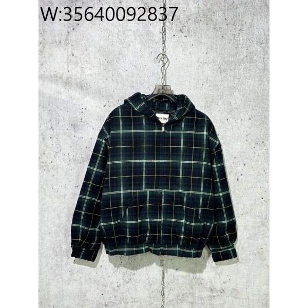 [사슬공장] 미우미우 24FW 코튼 체크 후드 자켓 그린