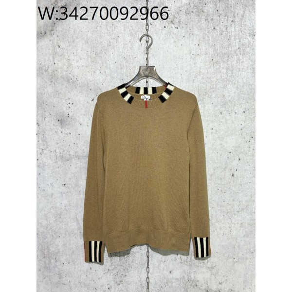 [사슬공장] 버버리 체크 이음 단색 니트 카키