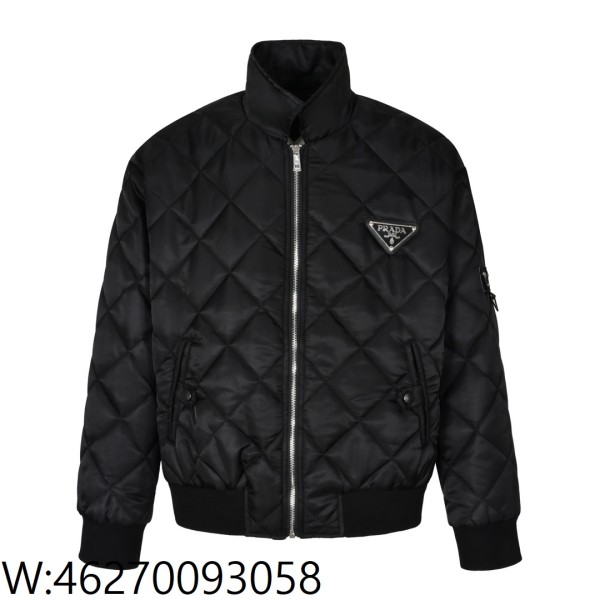 [잔디집2] 프라다 세모 로고 퀼팅 지퍼 코튼 자켓 블랙