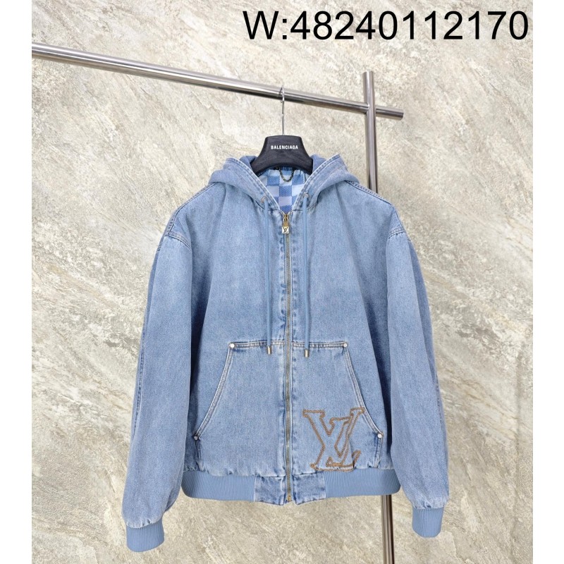• GTR공장 루이비통 LV자수 후드 데님 자켓 라이트 블루