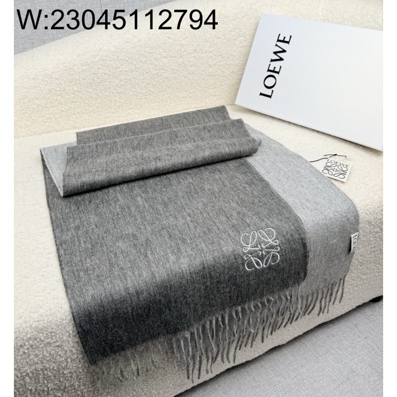 • AGG 로에베 베이직 로고 태슬 스카프 30*180cm 그레이 캐시미어 50% 양털 50%