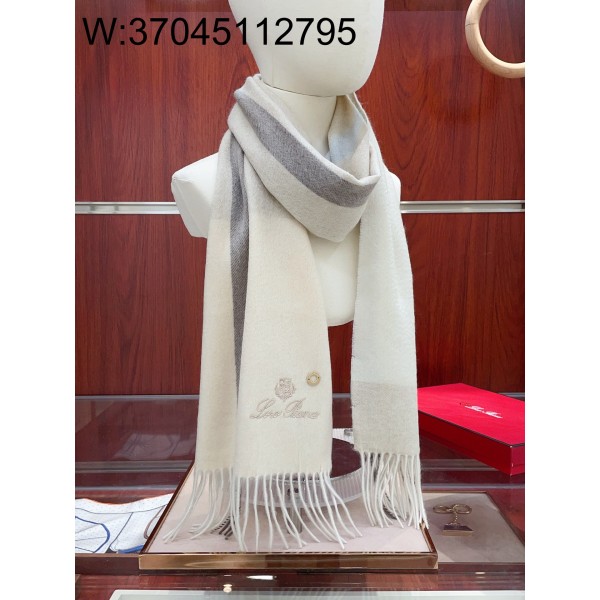 • AGG 로로피아나 자수 태슬 스카프 30*180cm 아이보리 캐시미어 100%