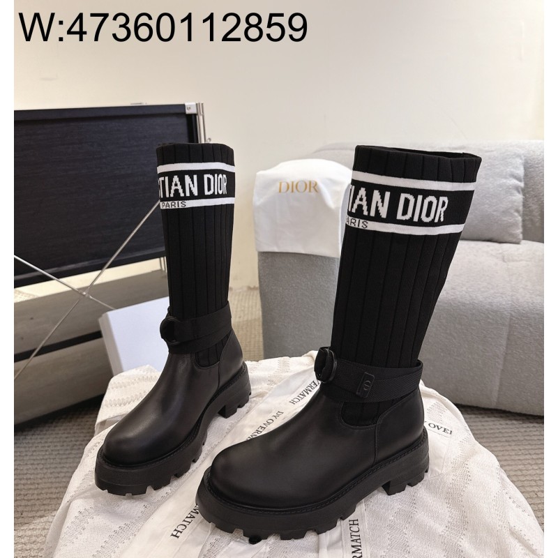 • [327] 디올 D-메이저 롱 부츠 카프스킨 앤 테크니컬 니트 블랙