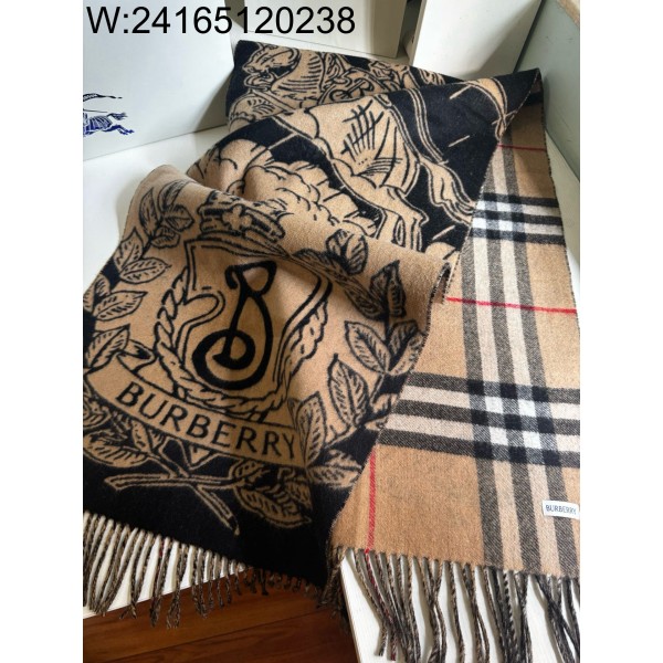 AGG 버버리 양면 캐시미어 스카프 카키 210*50cm 캐시미어100%