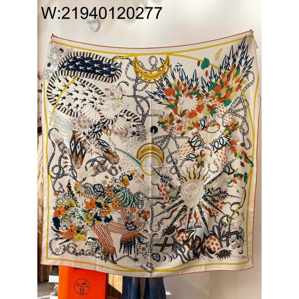 AGG 에르메스 아트 동물 스퀘어 스카프 140*140cm 아이보리 70%캐시미어 30%실크