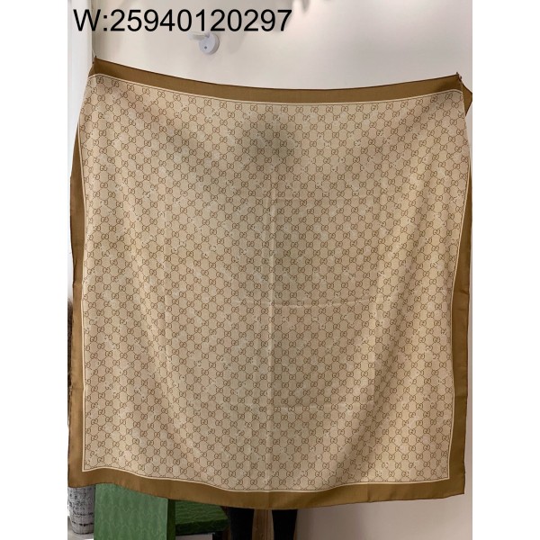 • AGG 구찌 올 오버 GG로고 스퀘어 스카프 다크 베이지 135*135cm 70%캐시미어 30%실크