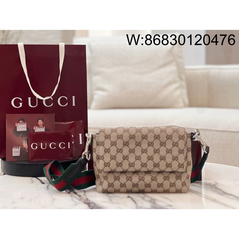 • [JHL] 구찌 스몰 GG 크로스바디 백 웹 베이지 다크 브라운 821617 19*15*7cm