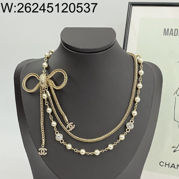 • AGG 샤넬 나비매듭 이중 진주 목걸이 골드