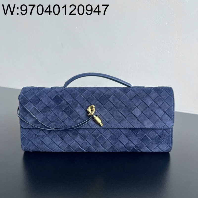 • 징 팩토리 보테가베네타 안디아모 클러치 741511 31*13*3cm 네이비 블루 스웨이드