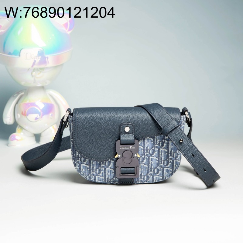 • [JHL] 디올 스몰 새들 메신저 백 플랩 디올 오블리크 자카드 앤 그레인드 카프스킨 블루