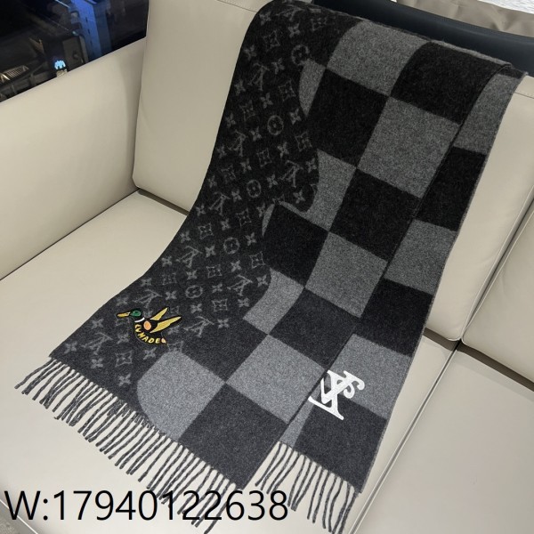 • AGG 루이비통 니고 모노그램 다미에 이음 스카프 그레이 캐시미어 100%