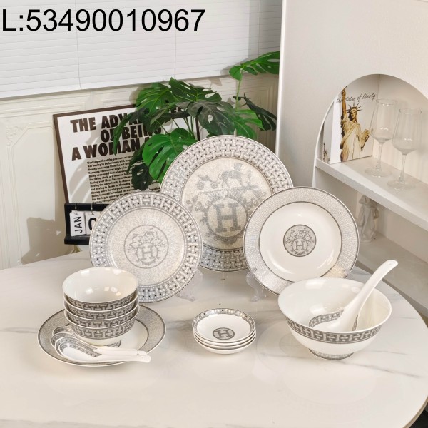 • AGG 에르메스 H 모자이크 식기 세트 라이트 그레이 22개