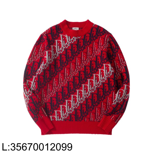 [흰] 디올 배색 오블리크 자카드 니트 레드