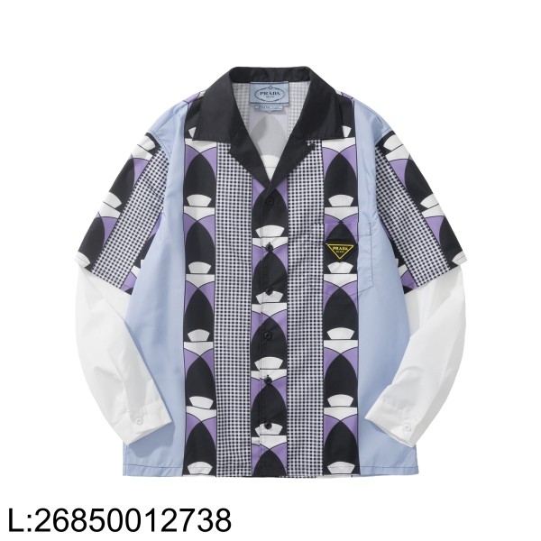 [흰] 프라다 타임캡슐 프린티드 코튼 셔츠 라이트 블루 시클라멘 페이크 레이어링 긴팔 셔츠
