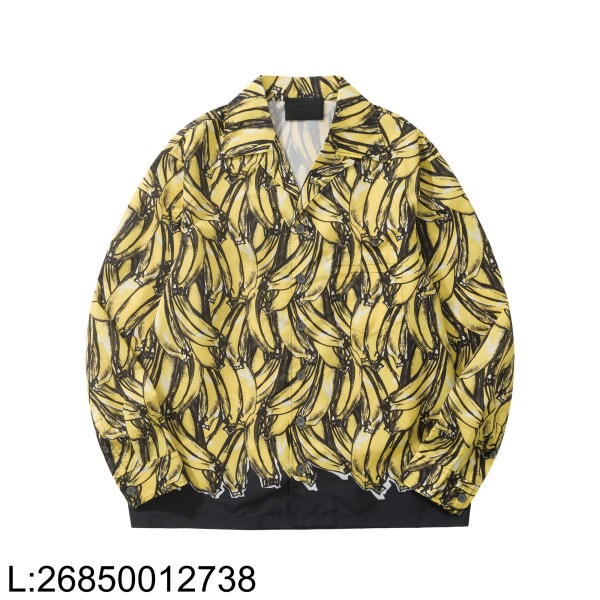 [흰] 프라다 타임캡슐 프린티드 바나나 코튼 긴팔 셔츠 옐로우