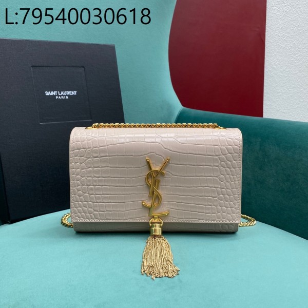 • Pomegrante 생로랑 엠보싱 크로커다일 가죽 KATE 스몰 태슬 백 골드 474366 20*5*12.5cm 연핑크