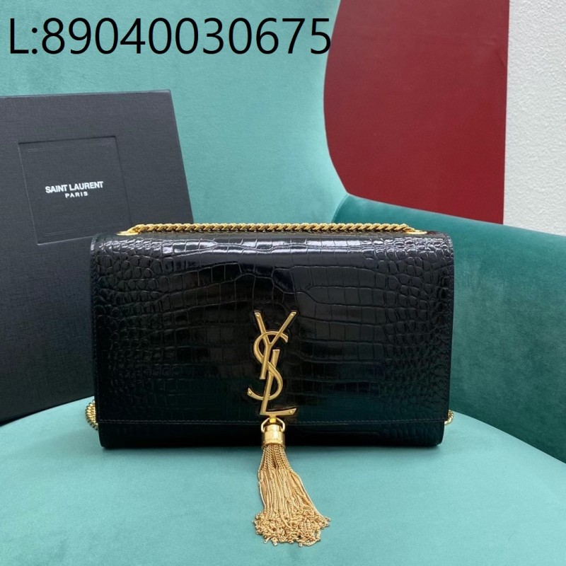 • Pomegrante 생로랑 엠보싱 크로커다일 가죽 KATE 미디엄 태슬 백 골드 354119 24*5*14.5cm 블랙