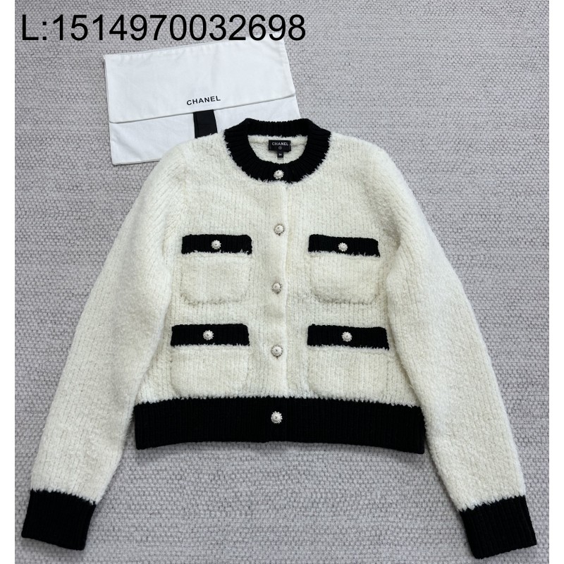 • [타지아공장(tj공장) -여성전용] 샤넬 25K 울 배색 가디건 4포켓 화이트