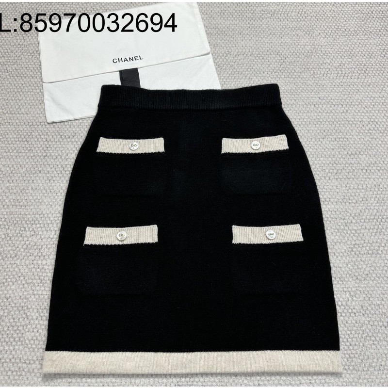 • [타지아공장(tj공장) -여성전용] 샤넬 25K 캐시미어 배색 스커트 블랙