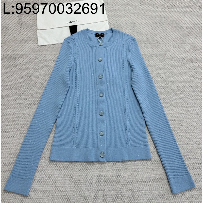 • [타지아공장(tj공장) -여성전용] 샤넬 25B 울 자카드 단색 가디건 스카이 블루
