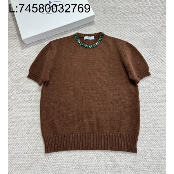 [타지아공장(tj공장) -여성전용] 프라다 캐시미어 니트 반팔티 블라운 그린 큐빅