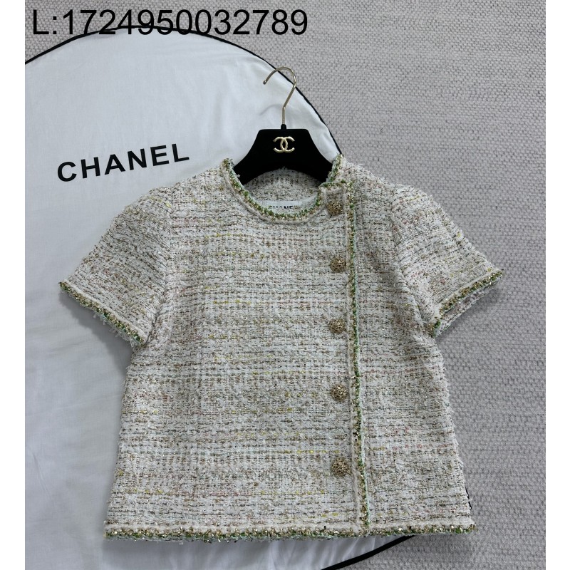 • [타지아공장(tj공장) -여성전용] 샤넬 봄 트위드 반팔 자켓 골드 라이트 베이지