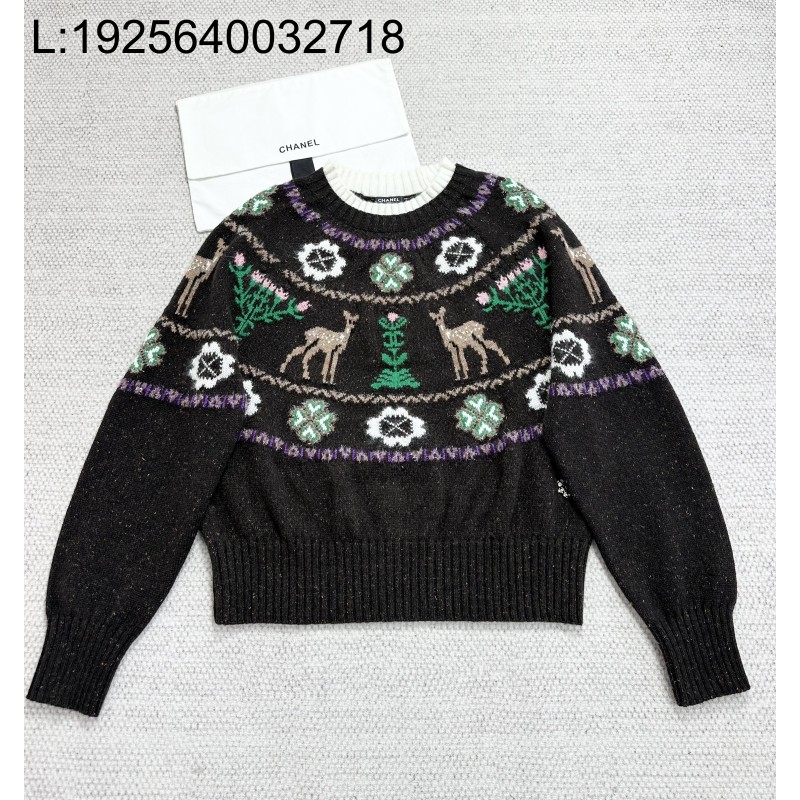 • [타지아공장(tj공장) -여성전용] 샤넬 25N 사슴 자카드 니트 다크 브라운