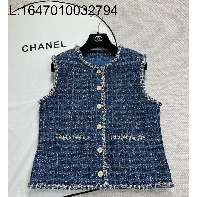 • [타지아공장(tj공장) -여성전용] 샤넬 체크 트위드 조끼 블루