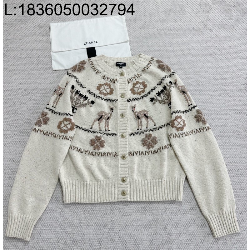 • [타지아공장(tj공장) -여성전용] 샤넬 25N 사슴 자카드 캐시미어 가디건 화이트