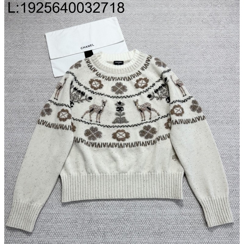 • [타지아공장(tj공장) -여성전용] 샤넬 25N 사슴 자카드 니트 화이트