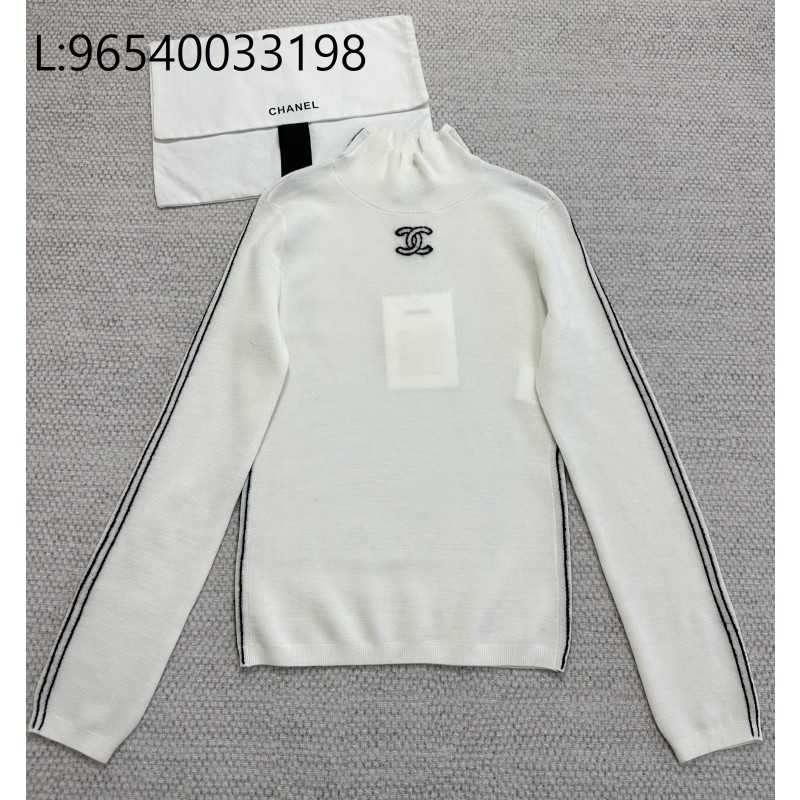 • [타지아공장(tj공장) -여성전용] 샤넬 CC로고 반하이넥 울 니트 화이트