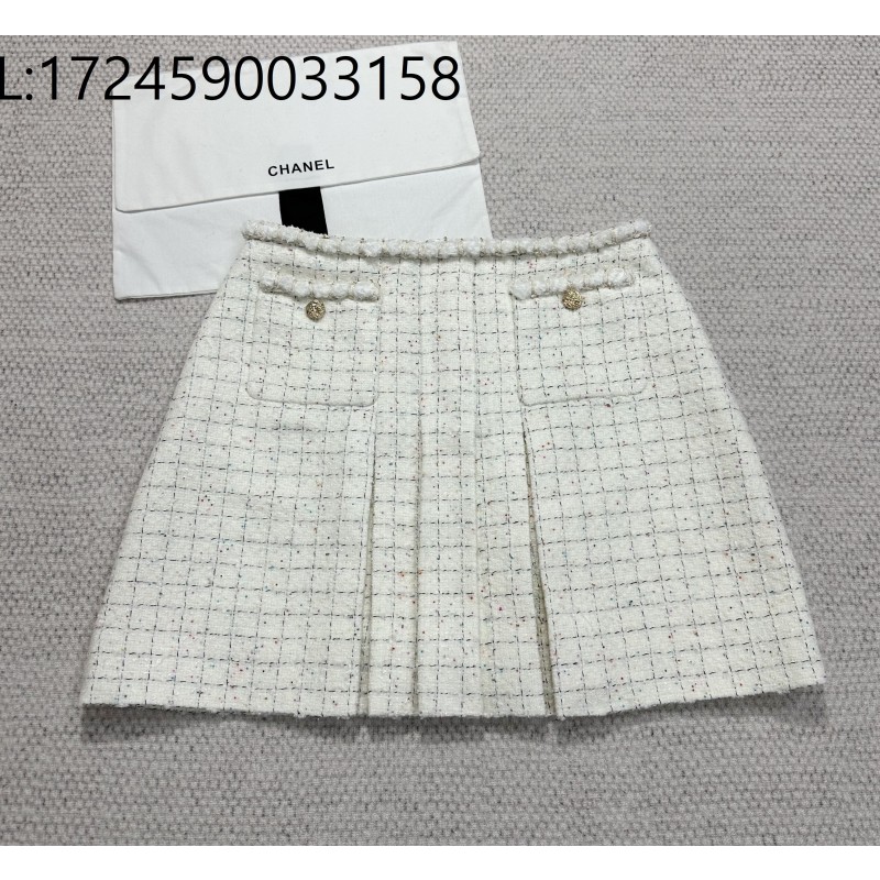 • [타지아공장(tj공장) -여성전용] 샤넬 더블 포켓 체크 주름 스커트 아이보리