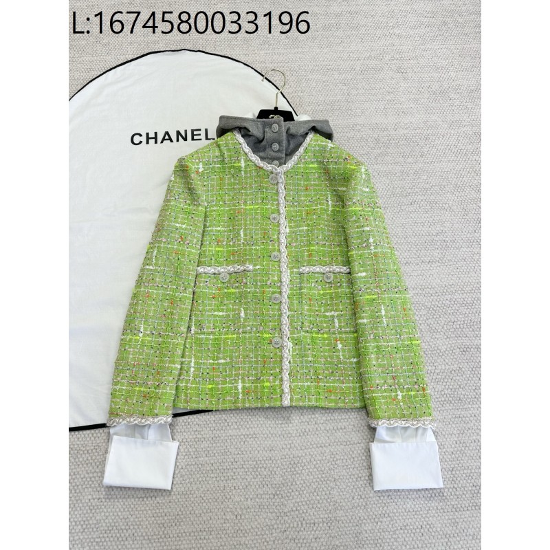• [타지아공장(tj공장) -여성전용] 샤넬 트위드 페이크 레이어링 그린 자켓 탈부작 후드