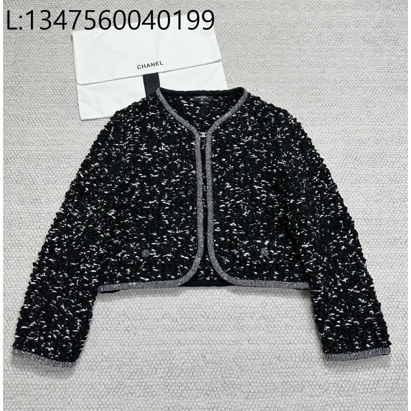 • [타지아공장(tj공장) -여성전용] 샤넬 흑백 배색 트위드 자켓 가디건 블랙