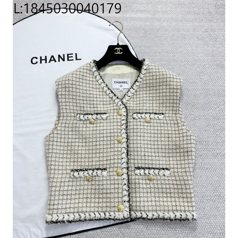 • [타지아공장(tj공장) -여성전용] 샤넬 골드 단추 체크 자켓 조끼 라이트 베이지