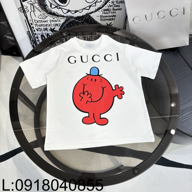 • [AC아동복] 구찌 레드 동그라미 만화 프린트 반팔티 화이트