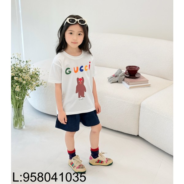 [AC아동복] 구찌 멀티컬러 모노그램 곰 반팔티 화이트
