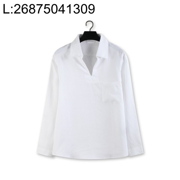 [YD공장] 제냐 오아시 리노 아마 브이넥 카라 긴팔티 화이트