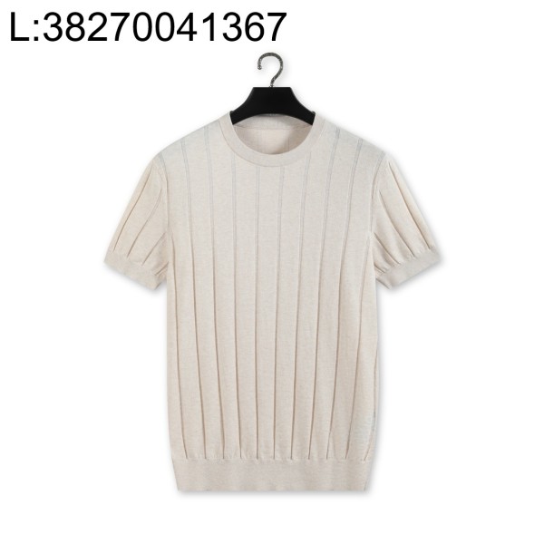 [YD공장] 로로피아나 스트라이프 자카드 니트 반팔티 혼방 코튼 아마 라이트 베이지