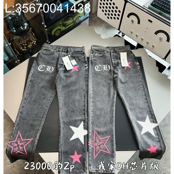 V공장 크롬하츠 별 33 프린트 청바지 그레이