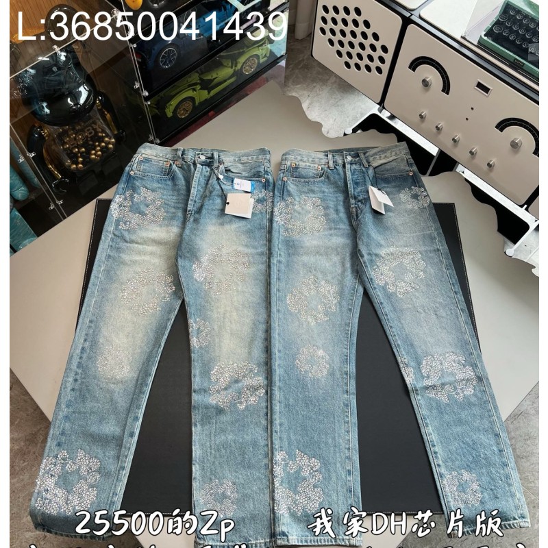 • V공장 크롬하츠 무라카미 타카시 큐빅 꽃 청바지 라이트 블루