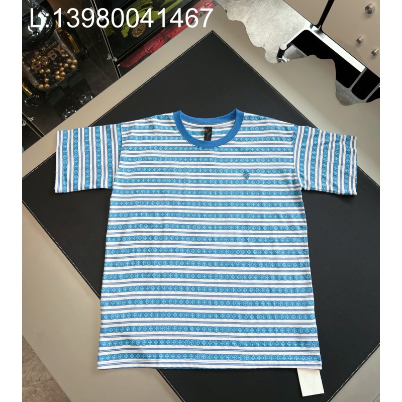 • V공장 크롬하츠 십자가 스트라이프 반팔티 블루