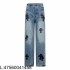 • V공장 크롬하츠 무라카미 타카시 큐빅 꽃 청바지 라이트 블루