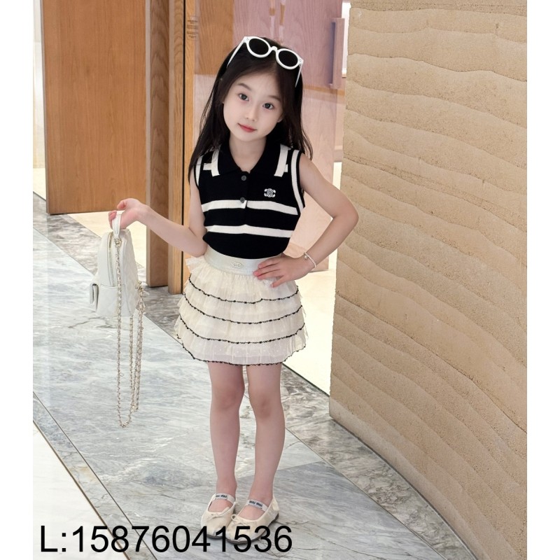 • [AC아동복] 셀린느 스트라이프 반팔 니트 디올 스커트 세트