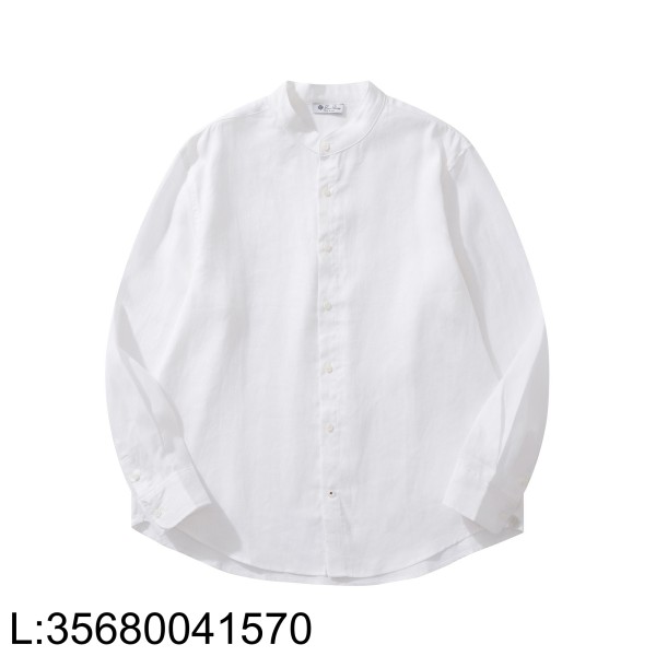 [흰] 로로피아나 엘리아 베이직 순색 아마 노칼라 긴팔 셔츠 화이트