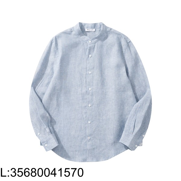 [흰] 로로피아나 엘리아 베이직 순색 아마 노칼라 긴팔 셔츠 블루