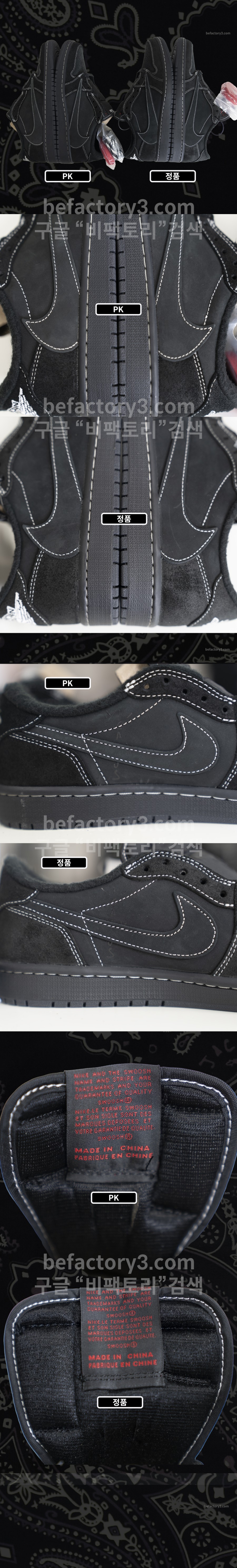 나이키 나이키 조던 x 트래비스 스캇 블랙 팬텀 PK ●정가품 비교사진