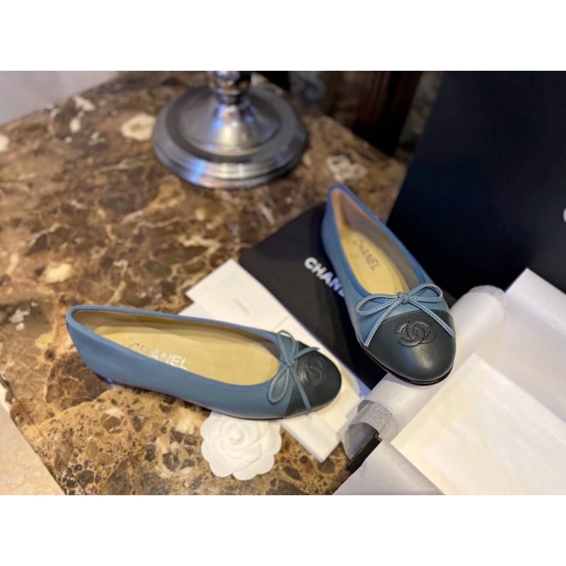 • [팬더샵] 샤넬 CC 스티치 로고 레더 리본 발레 슈즈 2컬러 Chanel