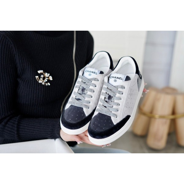 [팬더샵] 샤넬 모노그램 자수 로우탑 벨벳 레이스업 스니커즈 Chanel